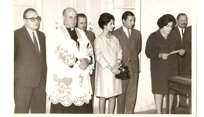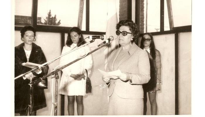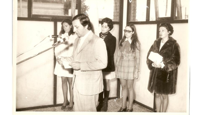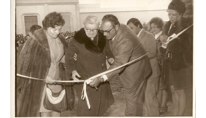 Acto de inauguración del edificio principal. Corta la cinta la primera maestra Ma. Cristina P. de Galassi