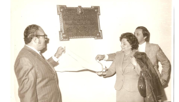 Descubren la placa el Dr. C. Valdez, intendente, y el Dr. R. Ricaldone, rector.